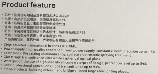 Chip: CREE/OSRAM/Epistar/Brigde
