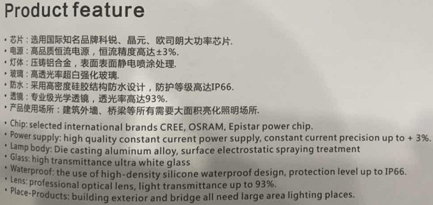 Chip: CREE/OSRAM/Epistar/Brigde