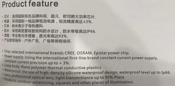 Chip: CREE/OSRAM/Epistar/Brigde